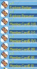 Untuk bergabung, kamu membutuhkan 10 Explorer Bequest yang bisa kamu dapatkan dari monster drop, ketika sukses bergabung kamu akan mendapatkan tanda bukti keanggotaan dengan diberikan Member Card I (level 1). Selamat! setelah menjadi seorang member, kamu mempunyai keistimewaan untuk menukarkan sejumlah Explorer Badge dengan item-item tertentu :